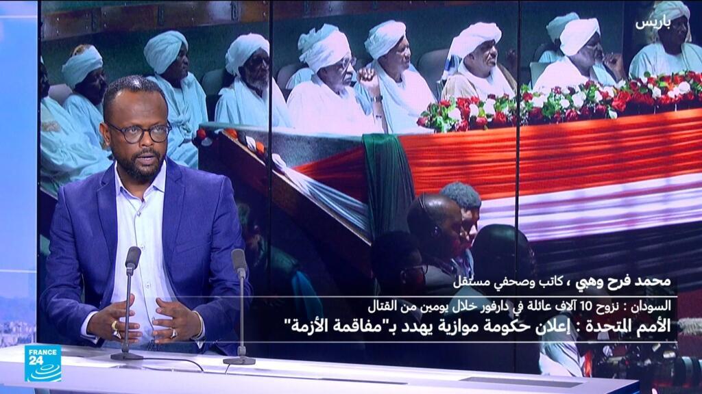 يتواصل نزوح آلاف العائلات في إقليم دارفور السوداني خلال يومين من القتال، فيما تحذّر الأمم المتحدة من أن تشكيل حكومة موازية يهدد بـ”مفاقمة الأزمة” في البلاد. للحديث عن هذا الموضوع نستضيف الكاتب والصحفي المستقل محمد فرح وهبي.