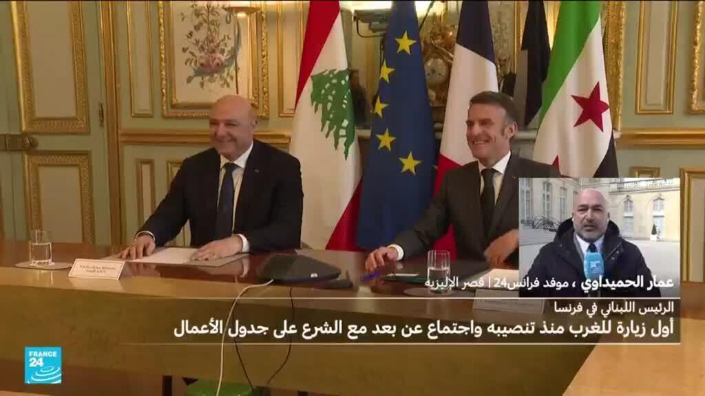 ماكرون يستقبل الرئيس اللبناني في قصر الإليزيه بباريس وسط تصاعد التوتر مع إسرائيل