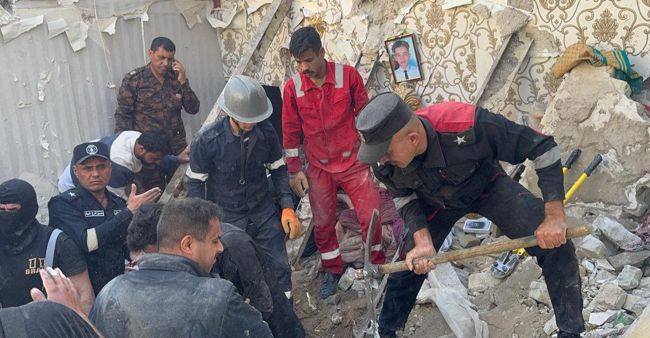 انهيار منزل في كربلاء وفرق الدفاع المدني تهرع إلى مكان الحادث