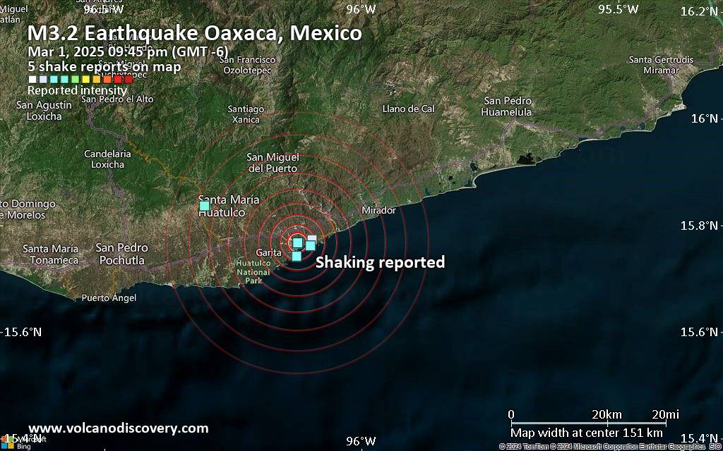 حدث شبيه بالزلازل ، زلزال محتمل ، تم الإبلاغ عنه قبل بضع دقائق بالقرب من Scurecita ، Oaxaca ، المكسيك