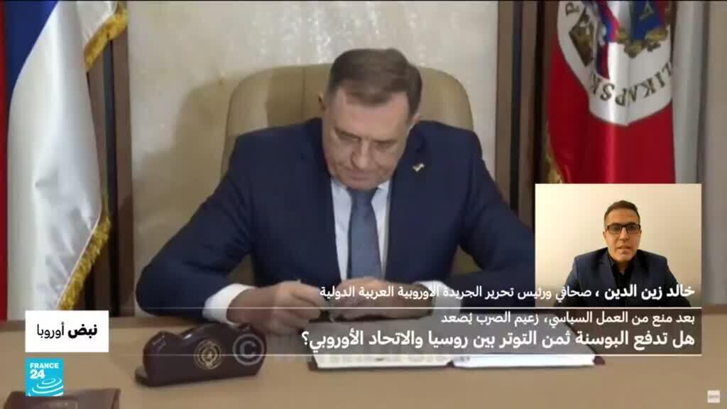 في نبض اوروبا نتوقف اليوم عن ازمة سياسية متصاعدة في البوسنة. أزمة بدات باعلان برلمان جمهورية صرب البوسنة قوانين اعتبرت انفصالية..تحظر على الشرطة والقضاء البوسنيين العمل في المنطقة الصربية قبل ان توقف المحكمة الدستورية في البوسنة بصورة مؤقتة تنفيذ القوانين. الخطوة جاءت بعد أن قضت محكمة الأسبوع الماضي بسجن دوديك، رئيس جمهورية صرب البوسنة القومي الموالي لروسيا، لعام ومنعه من ممارسة السياسة لست سنوات.كان معنا من وارسو خالد زين الدين صحافي ورئيس تحرير الجريدة الأوروبية العربية الدولية.